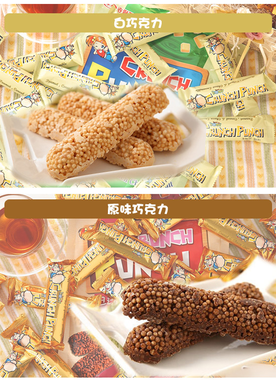 史上最強!韓國旅遊必買! ![]() ![]() 每當身邊有朋友要去韓國,或是剛從韓國回來,總是會看到【韓國punch】如影隨形!【韓國punch】米果棒口感酥脆、香味濃郁,在台造成轟動! ![]() 現在不用苦苦等人從韓國帶回來了!台灣也買得到喔!一撕開包裝就能聞到濃濃巧克力醬、咖啡等香氣;米果棒上一粒粒真材實料的米果帶來香酥爽脆的口感,保證你一吃就上癮! ![]() 不論是小朋友的歡樂時光,還是上班族的充電時刻,任何時候,都能隨時來上一支米果棒,讓心瞬間充滿幸福感! ![]() 共有5種口味,每款口味都各有專屬獨特的甜蜜滋味,每一種都值得一試,不容錯過! ![]() ![]() ![]() 商品說明 【韓國Crunch Punch】人氣米果棒 口味可選:原味巧克力/白巧克力/草莓巧克力/咖啡巧克力/柚子巧克力 規格:300g±10%/包 成份:白砂糖、棕櫚油、可可粉、米、全脂奶粉、卵磷脂、調味料、鹽、可可脂、奶油、脫脂奶粉、香草、乳糖麥粉、膨脹劑、乳化劑等 產地:韓國 保存期限:12個月 有效期限:依外包裝所標示 ※為保持產品最佳風味,開封後請盡速食用完畢 |